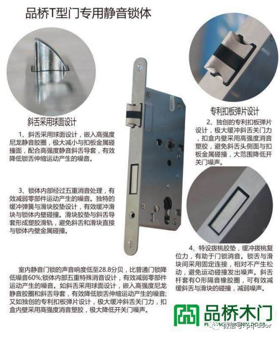 门扇和门套采用双锯齿、三面T型结构,在关闭时门沿突出的部分压合在门套上。所有门型设计都源自德国,以简约、简欧为主,时尚大方,新颖独特,体现了个性化的突出特点。